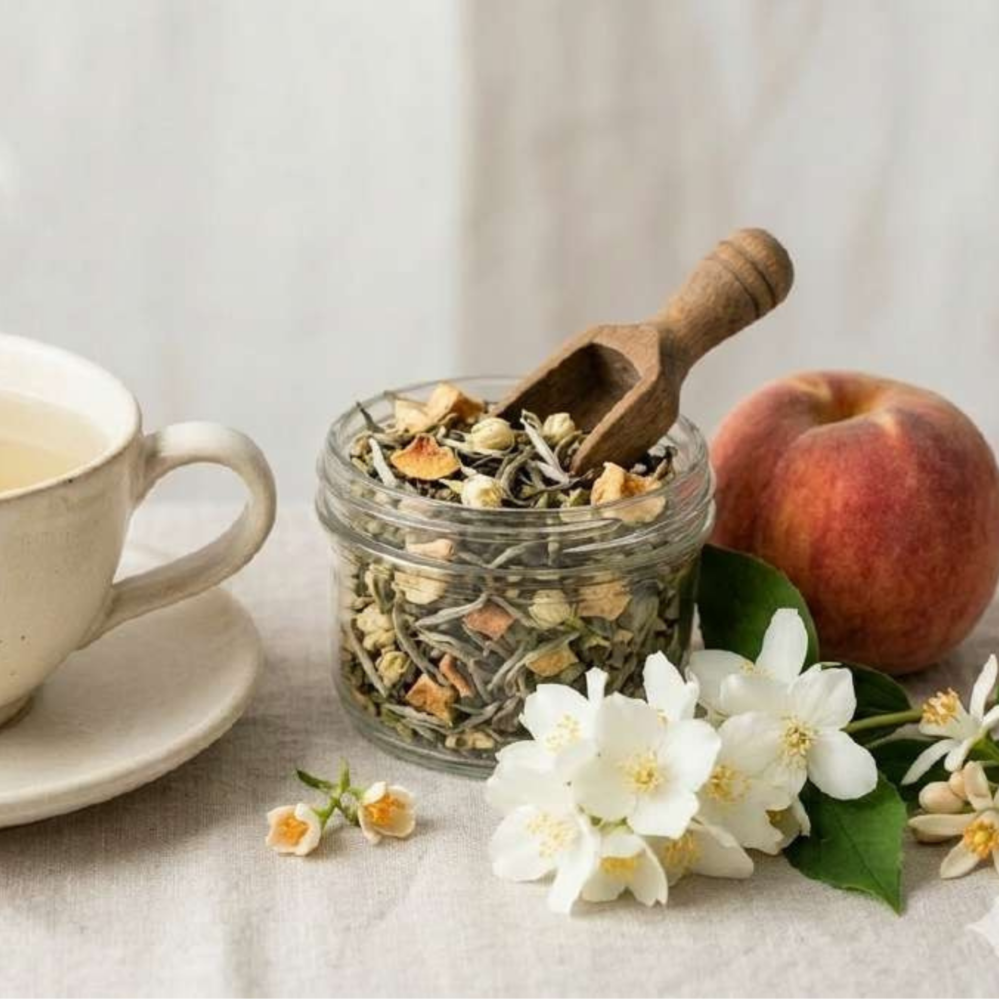 Le thé blanc est très délicat et prestigieux. C’est un thé très aérien, avec des notes de velouté de pêche et un parfum léger de jasmin ou de fleur d’oranger. C’est le summum de l’élégance. Le goût de la pêche est universellement apprécié et rend le thé blanc très accessible.